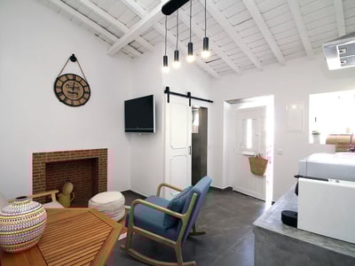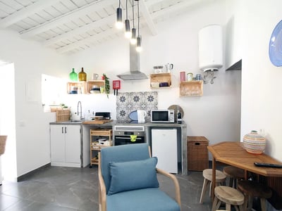 O espaço tem dois quartos, uma sala com kitchenette (com todos os utensílios necessários para a preparação das refeições) uma casa de banho e um quintal com jacuzzi, mesa, cadeiras e espreguiçadeiras.